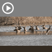 Bild © Judith Niggli / wildenachbarn.ch BiologieHomme & AnimalConseilsGalerie Biologie Le « roi des forêts » est, avec un poids moyen de 100 à 200 kg, le plus grand de nos ongulés indigènes. Les bois sont la caractéristique la plus connue du cerf élaphe (ou cerf rouge). Il les perd chaque année entre février et avril, avant qu’ils ne repoussent. Les bois nouvellement formés sont initialement encore recouverts d’une fine couche de peau (velours) riche en vaisseaux et en nerfs. En été, cette peau sèche et le cerf s’en débarrasse en frottant ses bois le long des troncs. Les biches n’ont pas de bois et vivent en familles ou en petites communautés. Il n’y a qu’en hiver que plusieurs familles peuvent se réunir pour former une harde. Les jeunes cerfs forment des hardes de célibataires, tandis que les plus âgés se déplacent souvent seuls. Pendant la saison du rut en septembre, les hardes de célibataires se défont et les cerfs recherchent alors une harde de biches qu’ils défendent dans des duels contre les autres concurrents. Les faons naissent en juin, après 34 semaines de gestation, généralement un seul faon par biche. Le spectre alimentaire du cerf élaphe est très large. Elle va de l’herbe et des bourgeons à l’écorce des arbres et aux brindilles, mais les légumes et les fruits sont également appréciés. Signes distinctifs Cerf mâle avec bois, qui tombent au printemps. Son pelage est brun rougeâtre en été, brun grisâtre en hiver. Les faons sont brun clair avec des taches blanches qui sont bien contrastées. Appartient à ongulés Physique Longueur tête-corps 190-250 cm, hauteur au garrot 100-150 cm, queue jusqu’à 20 cm; poids 90-260 kg. Confusions possibles Le chevreuil (Capreolus capreolus) est beaucoup plus petit que le cerf rouge. Ils font les deux partie de la famille des cervidés. Contrairement au chevreuil, le cerf rouge a une queue bien visible. Les bois du cerf rouge sont beaucoup plus gros et plus ramifiés que ceux du chevreuil et le « miroir » (tache blanche sur l’arrière-train) est beaucoup plus grand chez le cerf rouge que chez le chevreuil. Degré de menace Non menacé Période d’activité Actif toute l’année. Les cerfs deviennent nocturnes quand leur habitat est trop dérangé par les humains. Homme & animal Mesures de soutien Comportement calme Dans la forêt, il faut généralement se tenir tranquille. Après l’observation, vous devez vous retirer calmement afin de ne pas déranger l’animal. Déplacez-vous sur les chemins forestiers et tenez votre chien en laisse, ceci est particulièrement important pendant la période des mises-bas de mai à juin. Sports d’hiver Les avalanches sont un grand danger pour les cerfs en haute montagne. Malheureusement, ce danger est encore accru par les sports d’hiver, car le gibier est repoussé dans les pentes particulièrement sujettes aux avalanches. Lors de dérangement, les cerfs se réfugient en nombre dans les forêts, cela peut causer des dégâts considérables. Il est donc important de rester sur les pistes pendant les sports d’hiver et de contourner à bonne distance les zones où il y a des cerfs. Attention au passage du gibier Au printemps et à l’automne, la prudence est de mise sur les routes où les passages de gibier sont fréquents. Il s’agit de réduire sa vitesse et de se tenir prêt à freiner, surtout au crépuscule. Conseils Découvrir des traces Il est souvent plus facile de trouver des traces d’animaux sauvages que de les voir. C’est également le cas pour les cerfs rouges. Les empreintes de sabots du cerf rouge ressemblent beaucoup à celles du chevreuil, mais elles sont presque deux fois plus grandes. Outre les empreintes, on peut également trouver des crottes, appelées fumées, c’est-à-dire de courtes boules de forme cylindrique (environ 20-25 mm de long), généralement pointues à une extrémité et avec une petite dépression à l’autre. L’aspect peut varier au fil des saisons (plus molles, souvent agglomérées durant la belle saison). La saison des amours La saison du rut est particulièrement intéressante. Le spectacle a lieu entre septembre et octobre et attire de nombreux observateurs. Comme les cerfs mâles perdent leur timidité à cette période, ils sont particulièrement faciles à observer. Leurs cris, appelés « brame », peut également être entendu sur une longue distance. Les duels sont également très spectaculaires, deux cerfs se battent alors pour la faveur des biches. Lors de ces combats, qui sont très ritualisés, des blessures peuvent parfois se produire. © U. Wasem / WSL Fumées de cerfs © James Lindsey Empreinte d’un cerf élaphe © David Perez Bois de cerf tombé Les cerfs élaphes sont détenus dans de nombreux zoos et parcs animaliers. Il est possible d’observer des cerfs dans leur enclos, au Zoo de Servion, au Bois du Petit Château, au Siky park ou encore au Parc zoologique de Bienne.